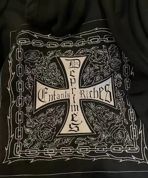 I’ve always really loved Society de Nobodies for their anarchist symbolism as well. I do love a nicely-destroyed Gildan piece with hem frays and faded ink misprints. And redacted text? Sign me up.